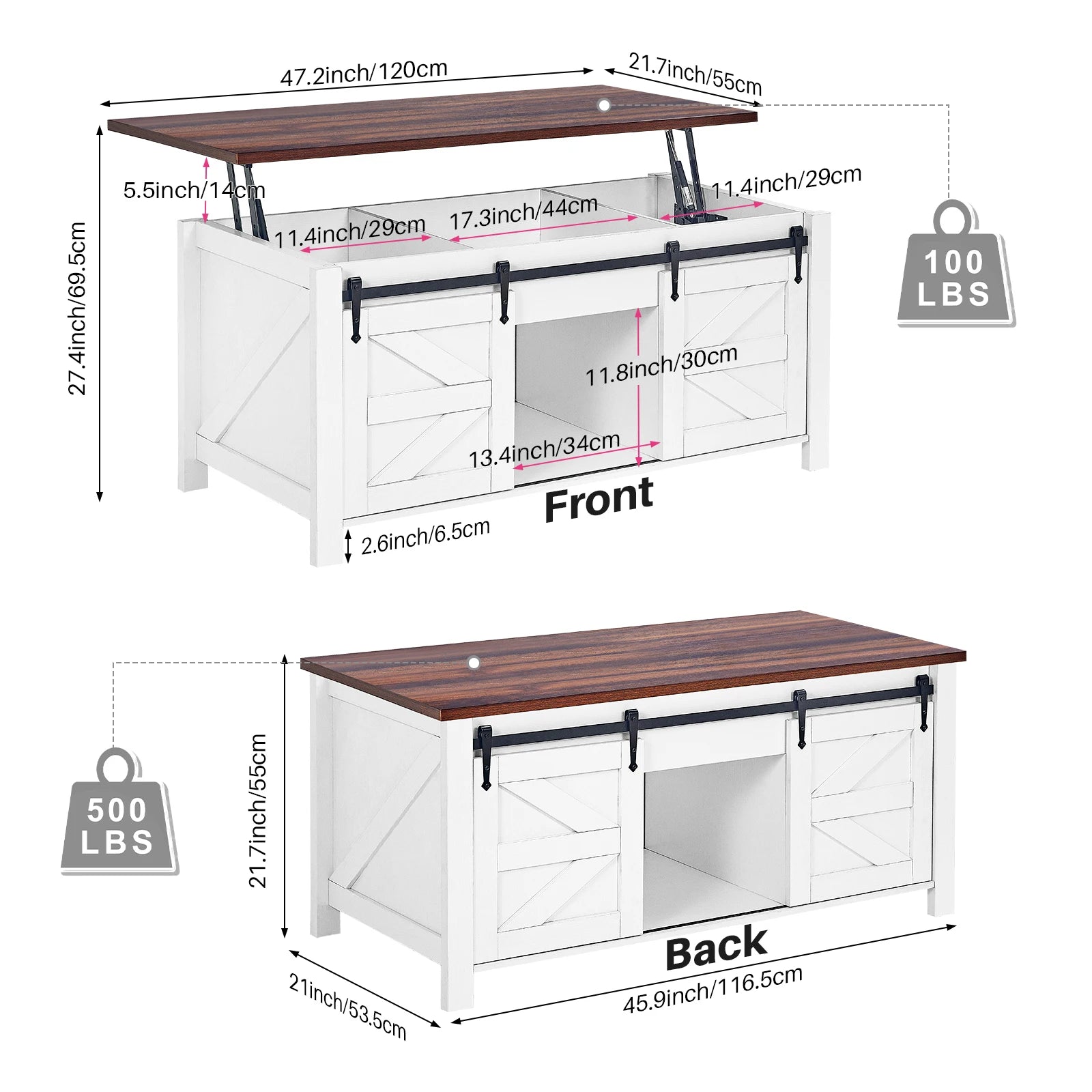 【Sliding Groove Barn Door】 The smooth sliding track of the coffee table with storage allows you to move the barn doors easily, enabling convenient access to items and maximizing space efficiency.