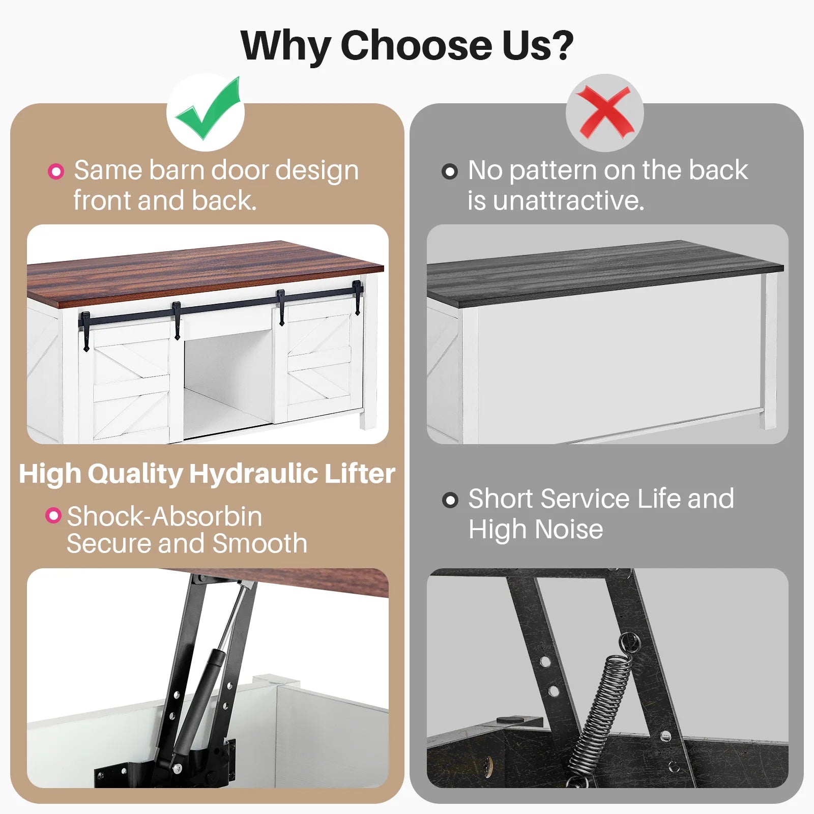 【Hidden Extra Large Storage Space】 This farmhouse lift top coffee table features a hidden storage compartment under the lift top, keeping all your living room essentials close at hand while keeping clutter at bay.