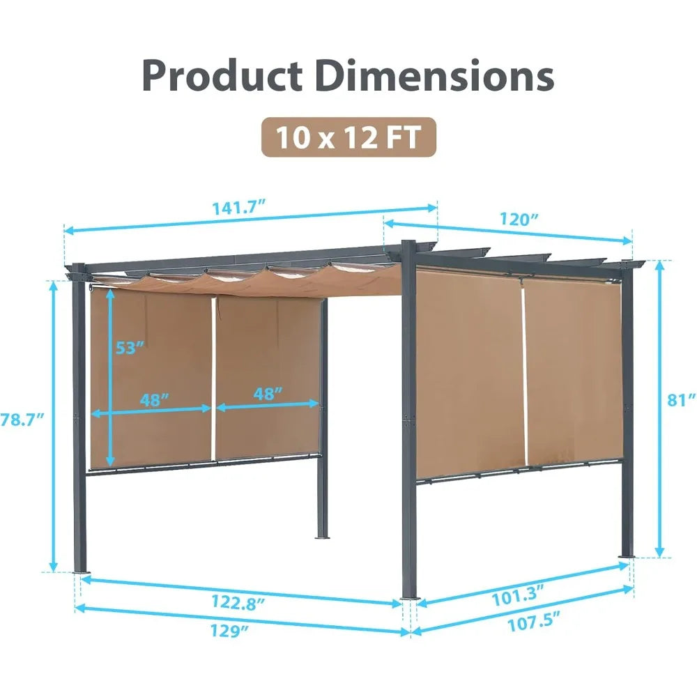 Outdoor Pergola with Retractable Shade Canopy,